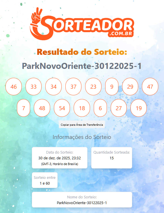 O sorteio será realizado utilizando a ferramenta online **Sorteador.com.br** (ou outra plataforma de geração de números aleatórios de ampla confiança), garantindo a imparcialidade e transparência do processo.
